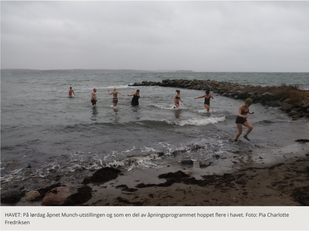 «Vi inviterer alle som kommer på åpningen til å bli med på isbading for å sette fokus på mental helse. Munch har vist oss at vi må se mot lyset, kanskje særlig nå på slutten av mørketiden, så vi ønsker å bruke denne anledningen til å utfordre oss selv og andre til å gå utenfor komfortsonen sin … en av årets blikkåpnerne. Arrangementet som har fått tittelen «Isglading» byr både på leirbål og live musikk»